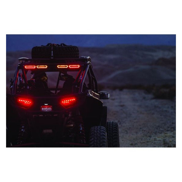 The RIGID Chase rear facing LED light adds safety and functionality to any UTV, rail, buggy, Jeep, or other off-road application by packing reverse, courtesy, strobe, running, and brake lights into a single compact package. A halo of powerful colored LEDs in red, amber, or blue around the perimeter of the aluminum housing can be used as a strobe (for racing and chase applications), running light, or third brake light.