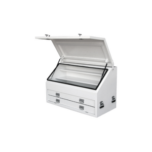 Ironman 4×4’s high quality aluminium ute, truck and trailer tool boxes that provide protection for a tradies most valuable assets. Our tool boxes are constructed from high quality aluminium and are powdercoated white. Ironman tool boxes are fitted with quality parts including stainless steel hinges, gas struts and strong locking mechanisms. Alloy tool boxes fit conveniently onboard your ute, truck or trailer providing protection from the elements and security for your tools. Every ute needs a tool box.